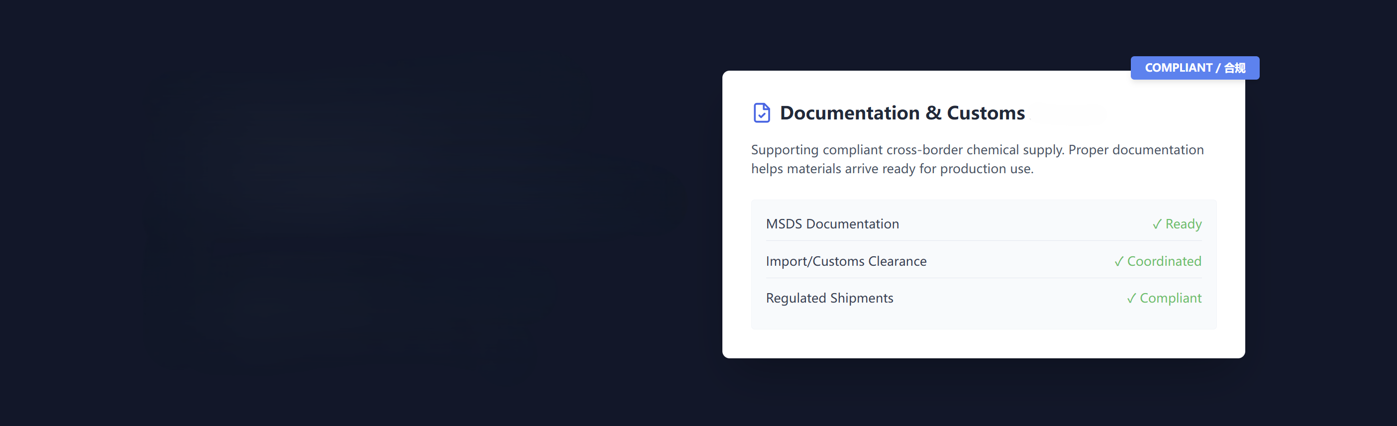 Adhesive and chemical material supply for multi-site production, ensuring the exact same formulation reaches every factory.